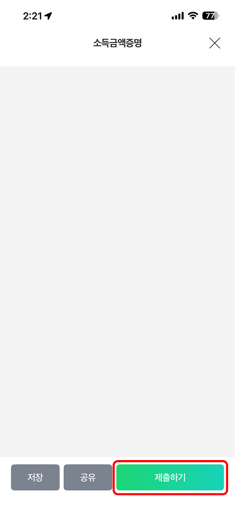 전자증명서 → 내 증명서 → 발급받은 전자문서(소득금액증명, 국민연금 가입자 가입증명, 건강보험자격득실확인서) 선택 → 제출하기→ 제출완료 확인 톡